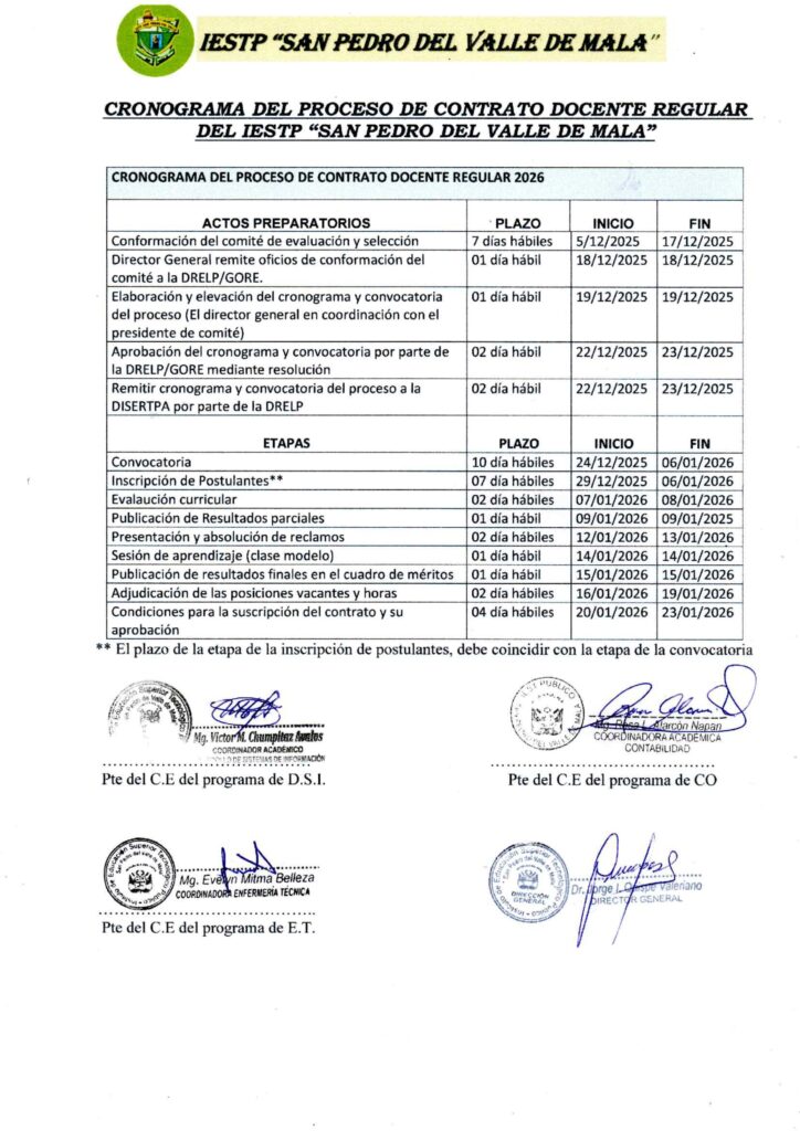 Cronograma del Proceso de Contratación Docente 2026