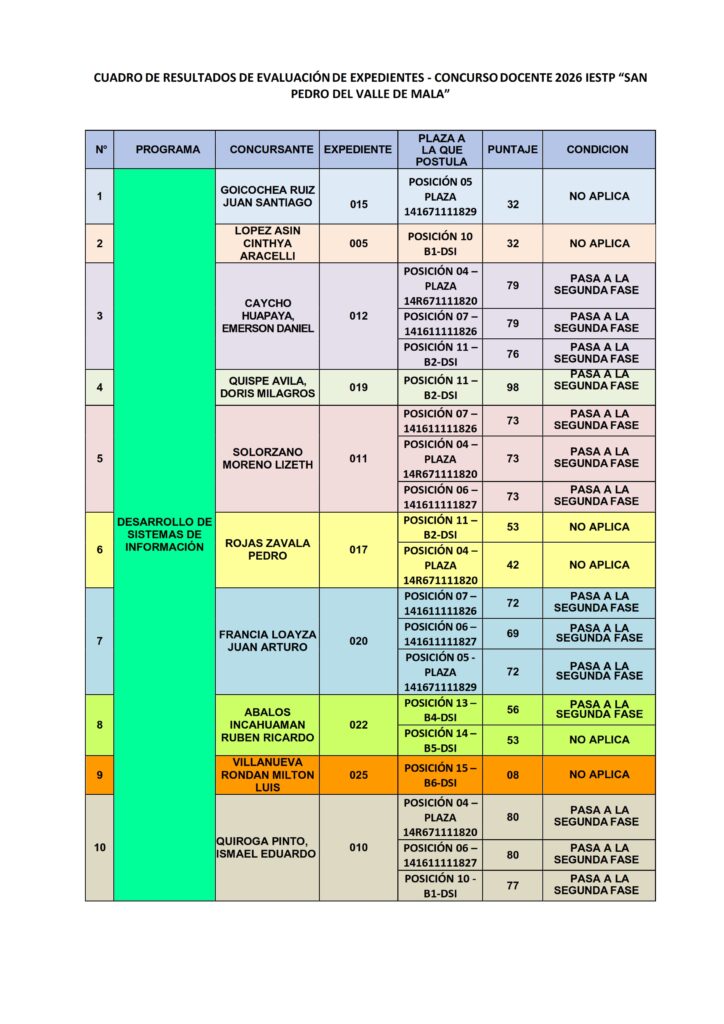 Se comunica que el día de mañana 14-01-2026 a las 8:00 A.M., todos los postulantes que hayan PASADO A LA SEGUNDA FASE van a dar