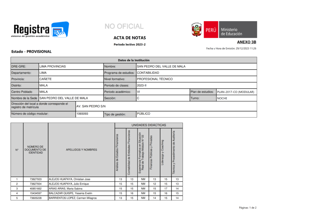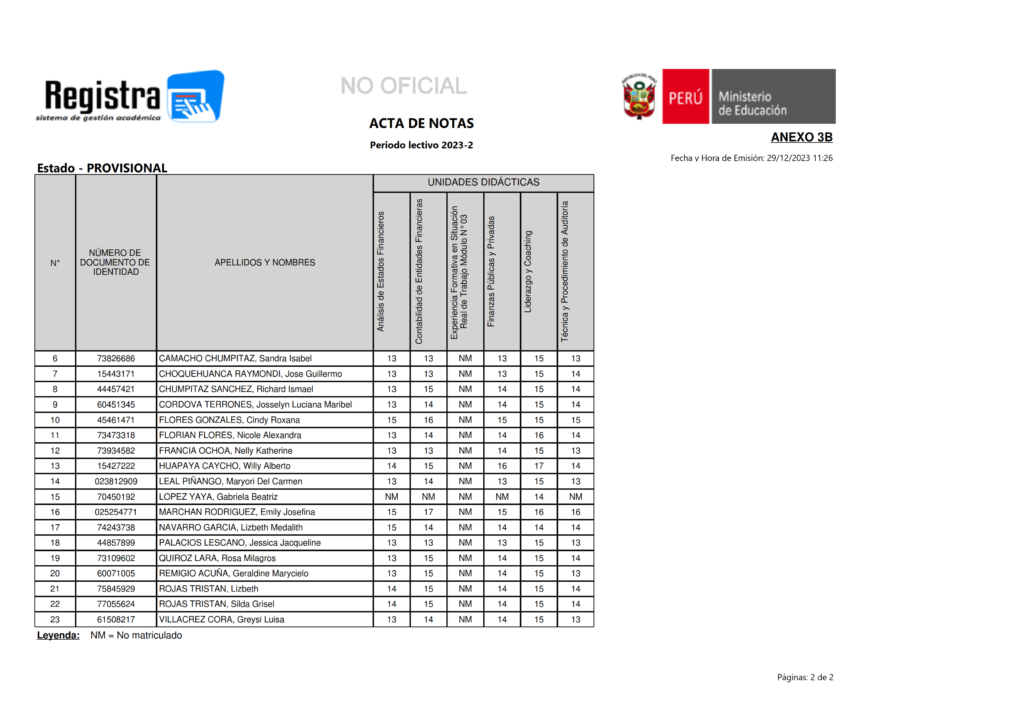 Acta de Notas CO-VI-2023-II