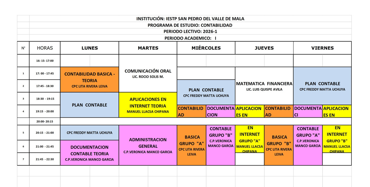 Comunicados Horarios del Programa de Contabilidad 2026-I Horarios del Programa de Contabilidad 2026-I • 5 de abril de 2026 Horarios del Programa de Enfermería 2026-I Horarios del Programa de Enfermería 2026-I • 1 de abril de 2026 Horarios del Programa de DSI 2026-I Horarios del Programa de DSI 2026-I • 1 de abril de 2026