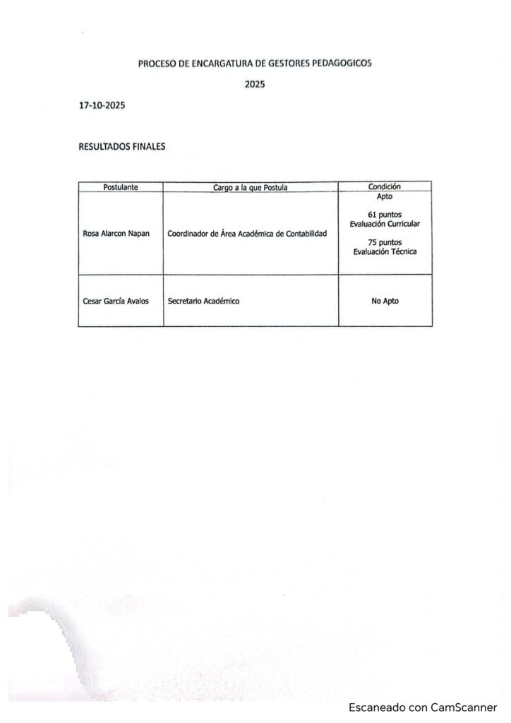 RESULTADOS FINALES DE POSTULANTES DEL PROCESO DE ENCARGATURA DE GESTORES PEDAGÓGICOS 2025