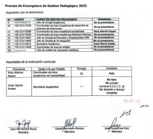 RESULTADOS PRELIMINARES DE PROCESO DE ENCARGATURA DE GESTIÓN PEDAGÓGICA 2025