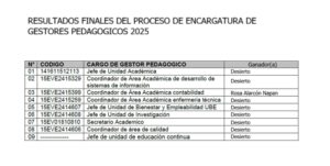 RESULTADOS FINALES DEL PROCESO DE ENCARGATURA DE GESTORES PEDAGÓGICOS 2025