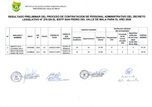 Resultados Preliminares del Proceso de Contrato de Personal de Biblioteca