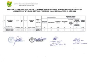 Resultado Final del Proceso de Contrato de Personal de Biblioteca