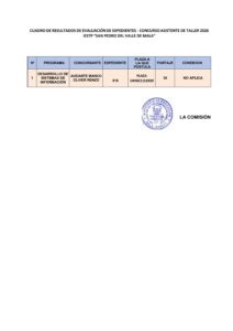 Publicación de Cuadro de Resultados de Evaluación de Expedientes Asistente de Taller 2026